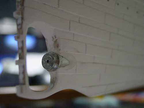 このパーツ、右舷側は少し短いため端材で調整します。 |