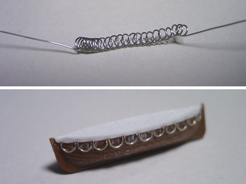 コードを細い棒に巻いて半分に切断後、ボートの外周に貼り付けます。