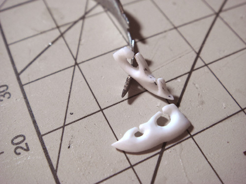 両端のロープを架ける場所はプラ板で削り出す。